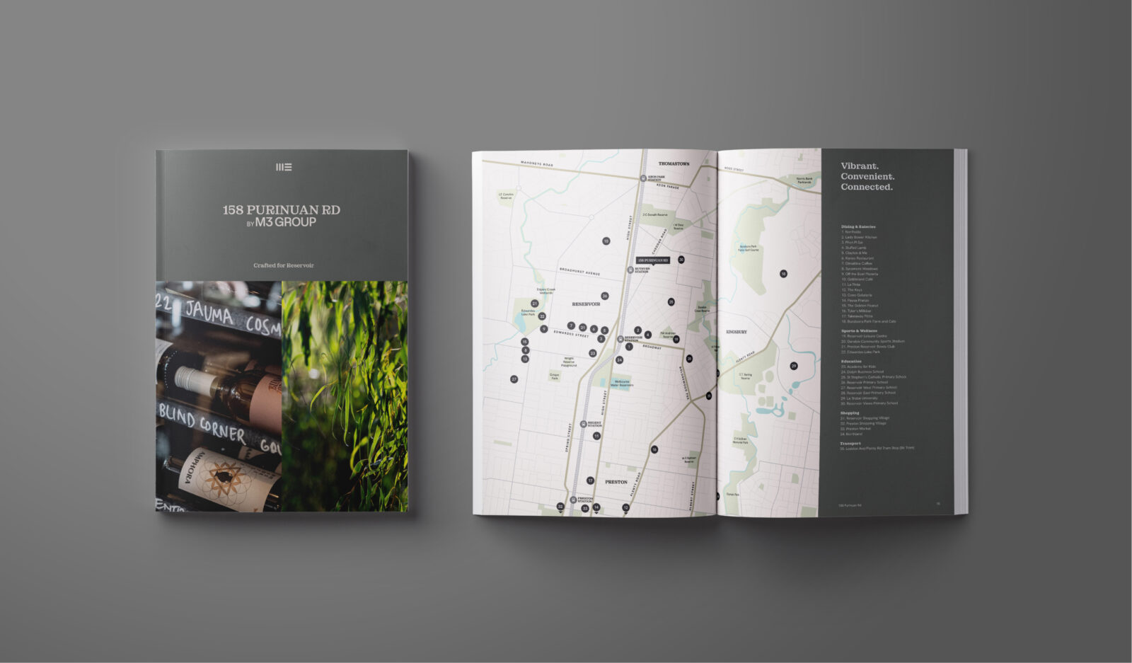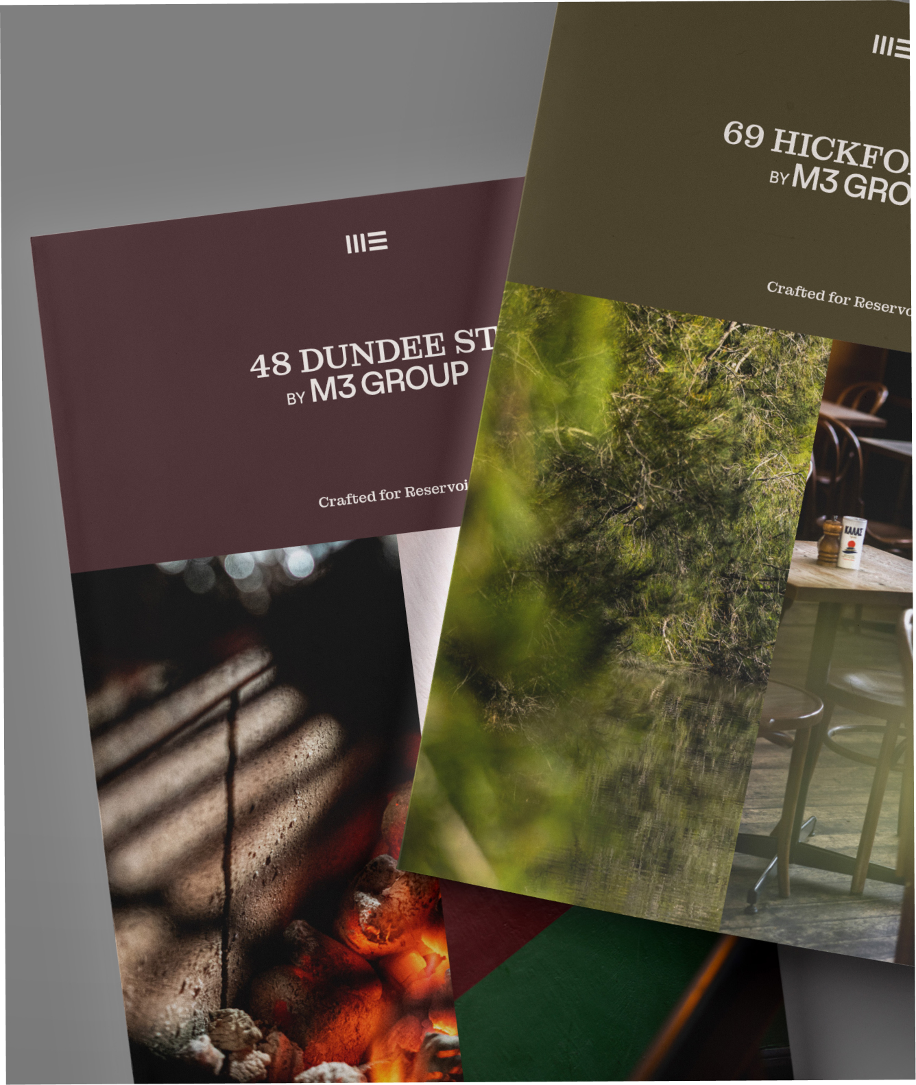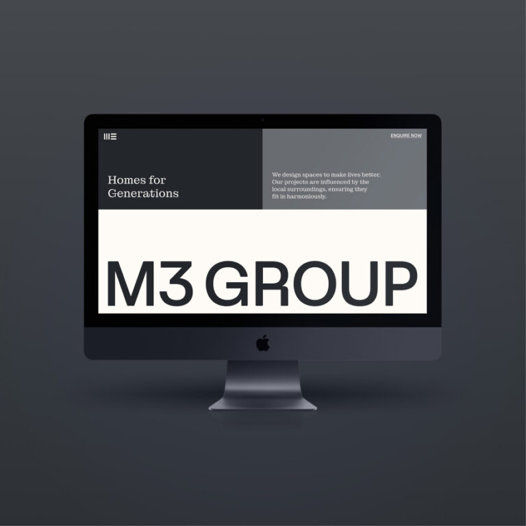 Playing with the idea of threes, the logotype features three lines to create the letter M and the number 3. All marketing collateral, art direction, layouts and copy for M3 Group projects also reflect this rhythm of threes. This approach ensures the brand is memorable, consistent and cohesive.