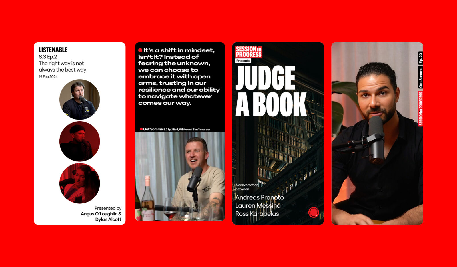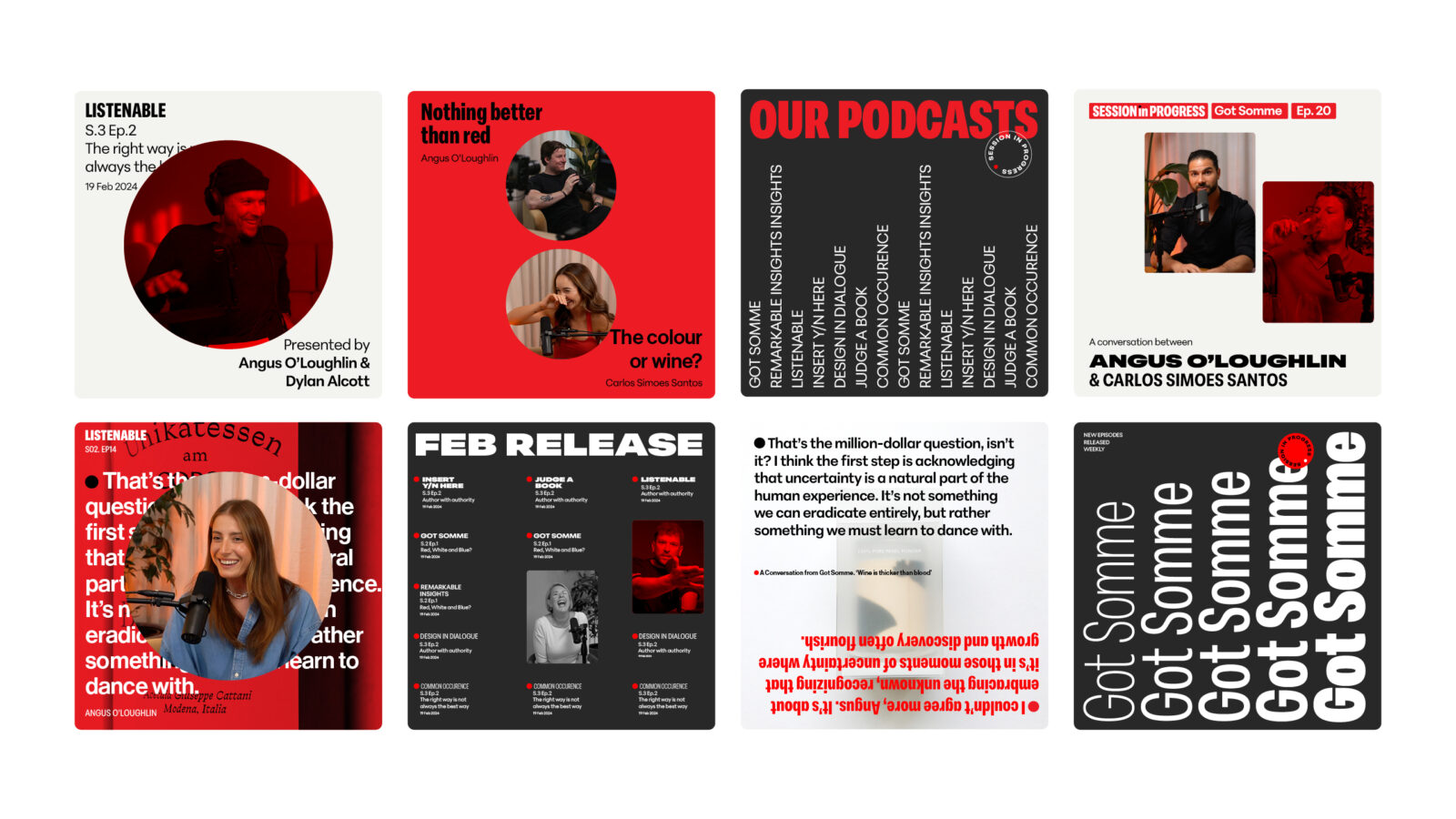 Session In Progress is a dynamic rebrand built around the universal symbol of recording — the red dot — representing a brand that’s always on, always evolving. More than a mark, it acts as a responsive graphic device, expanding and shifting to reflect real conversations in motion. Paired with a variable typeface that mirrors the rhythm of speech — bold in moments, light in others — the identity captures the fluidity of podcast dialogue. Designed with accessibility at its core, the pared-back palette of red, black and white ensures clarity, with the red symbol anchoring every touchpoint. The new name is both a cue and a promise: something meaningful is happening. Whether behind the mic or behind the scenes, the session is always in progress.